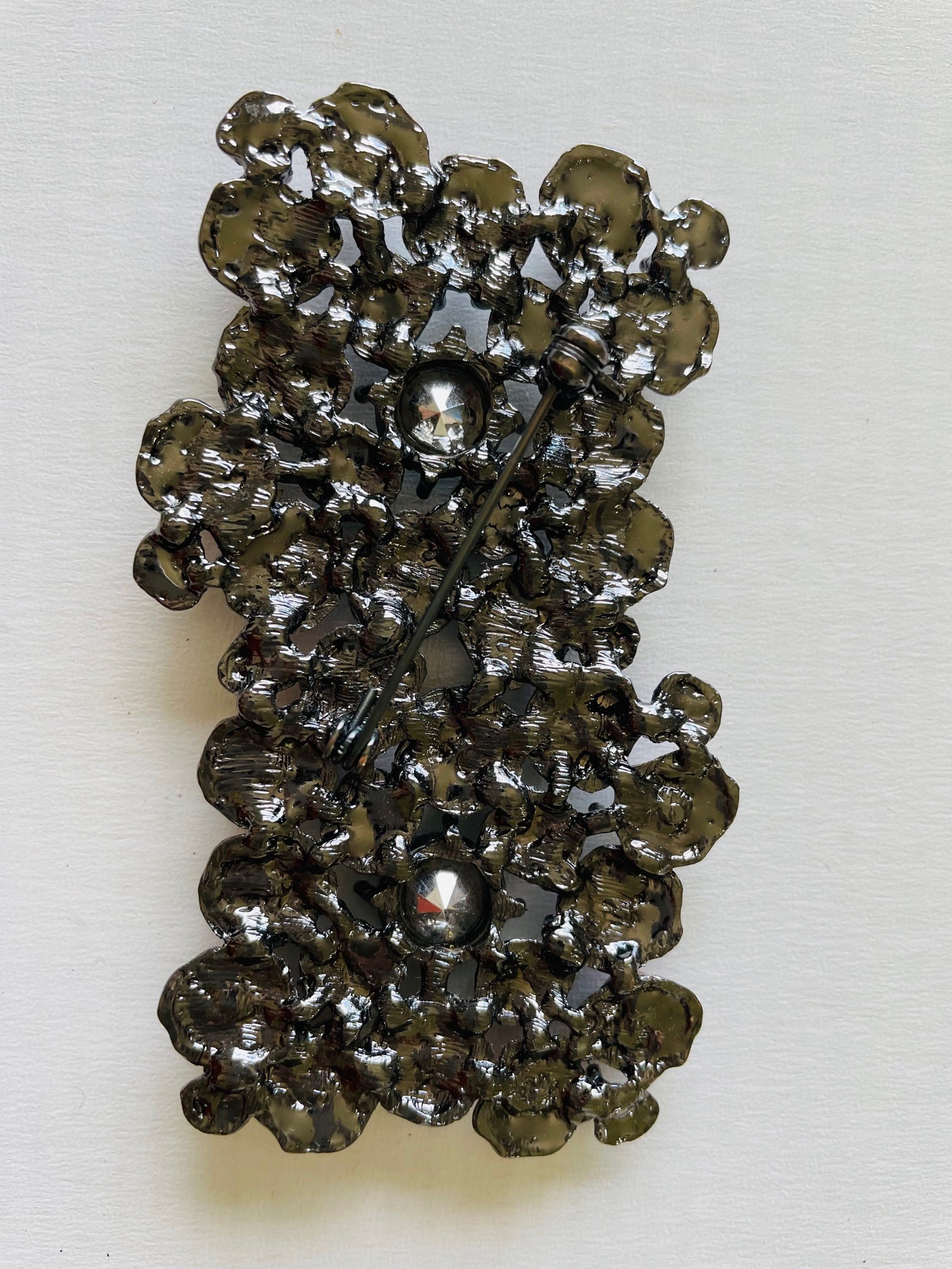 Wow!! Studded with copper and white pearls, together with clear and smokey crystals. The brooch has a quality clasp and is made from quality nickel-free electroplated brass. Width of the widest part of the brooch is 67 mm and the height is 90 mm.