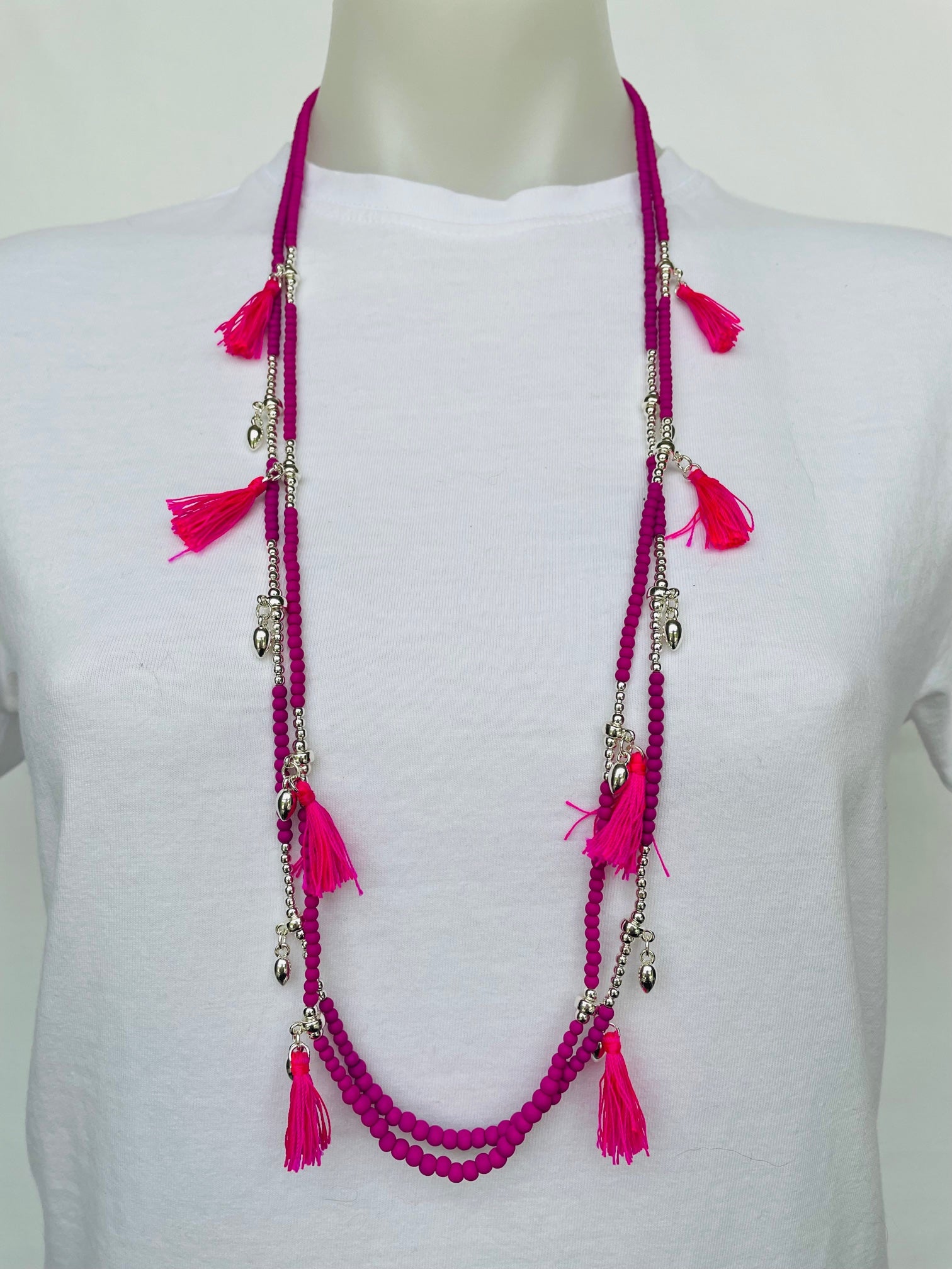 Fun fun fun!!! The tassels provide extra texture to this playful necklace!