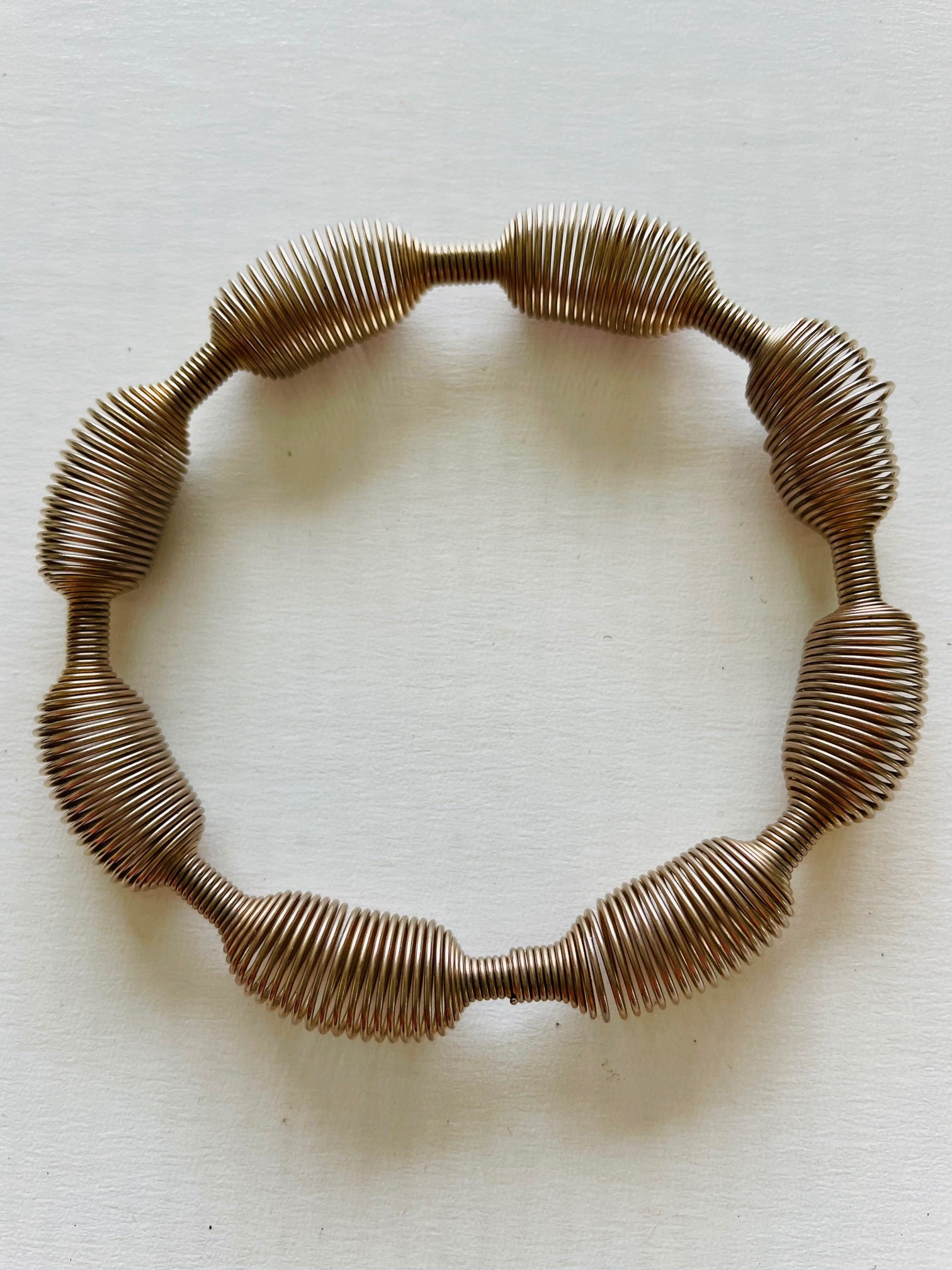 A very unique bracelet made from electroplated brass. Check out the colour options! Dress it up or down!!! The springy bracelet is very easy to slip on and off. The diameter of the bracelet is 60 mm and will suit most wrist sizes.